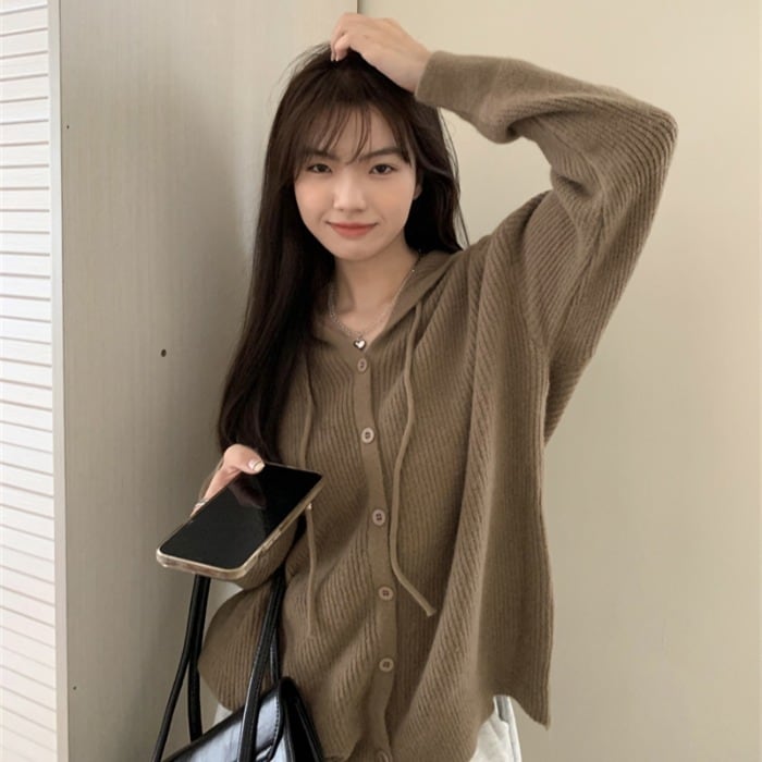 フードニットカーディガンレディースオータムルーズスリムセーター コート トップス ロング 秋物 kumikum86165139290