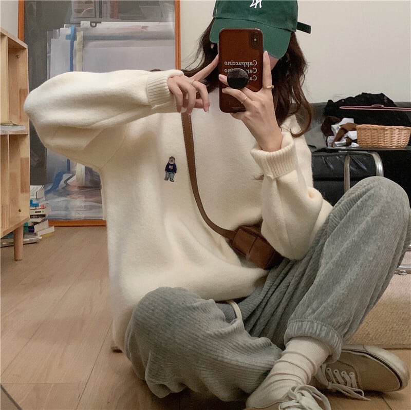 刺繍ルーズプルオーバー セーター オータムウィンター ロング 秋物 冬物 kumikum83465678701