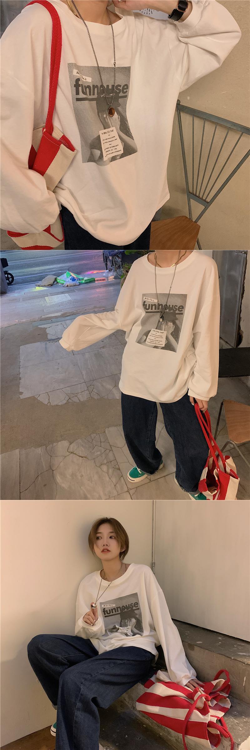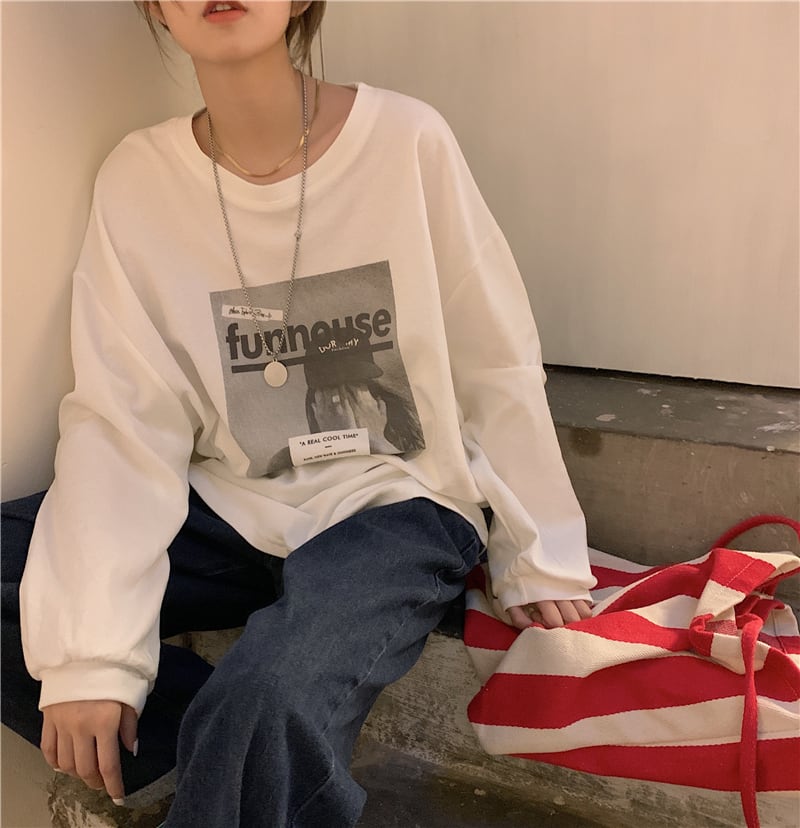 スタイルラウンドネックトップス ルーズTシャツ ロング Oネック kumikum87408886030