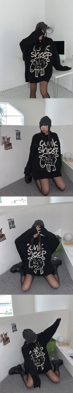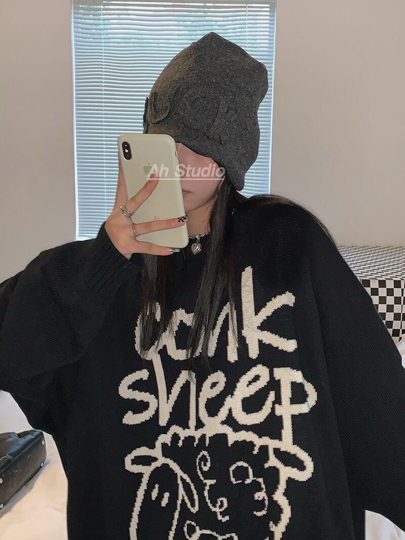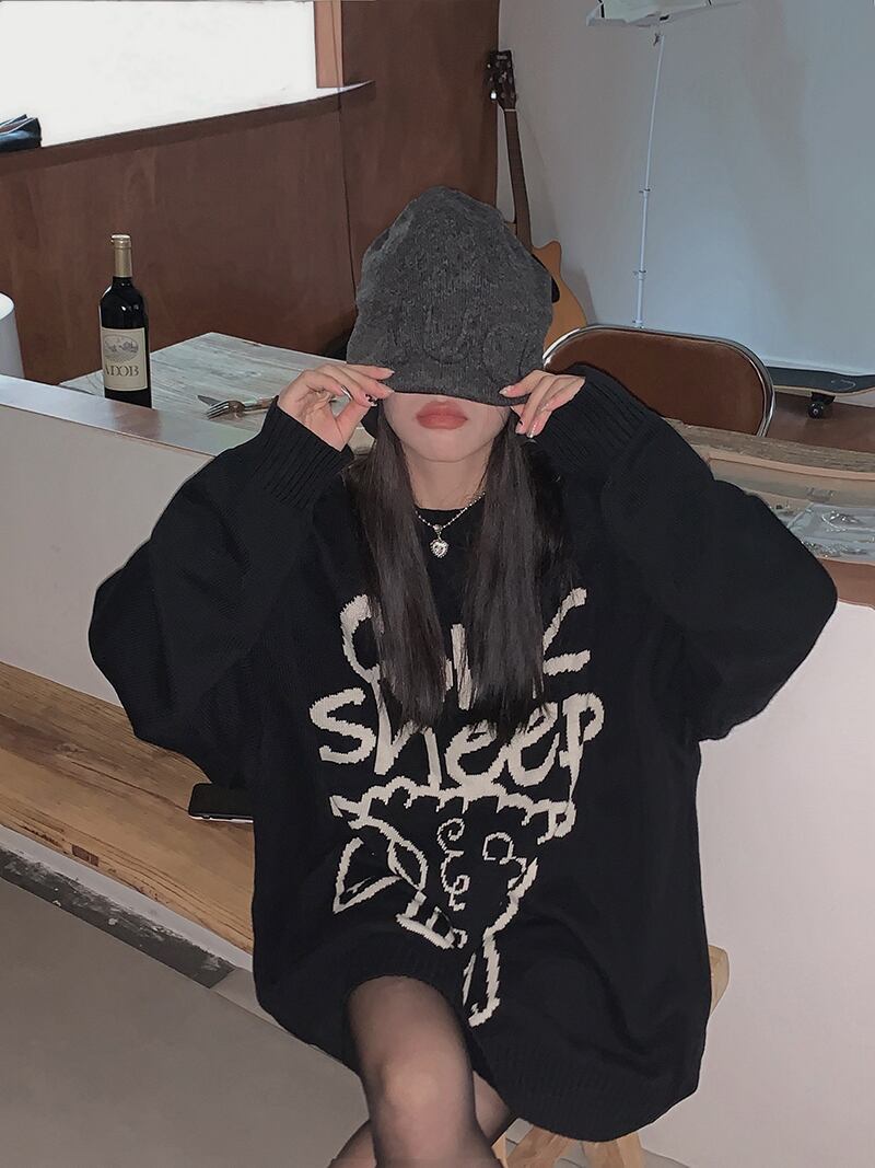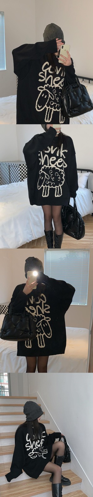 プリント柄ルーズプルオーバー セーター レディース ロング ウィンター 冬物 kumikum97433335078