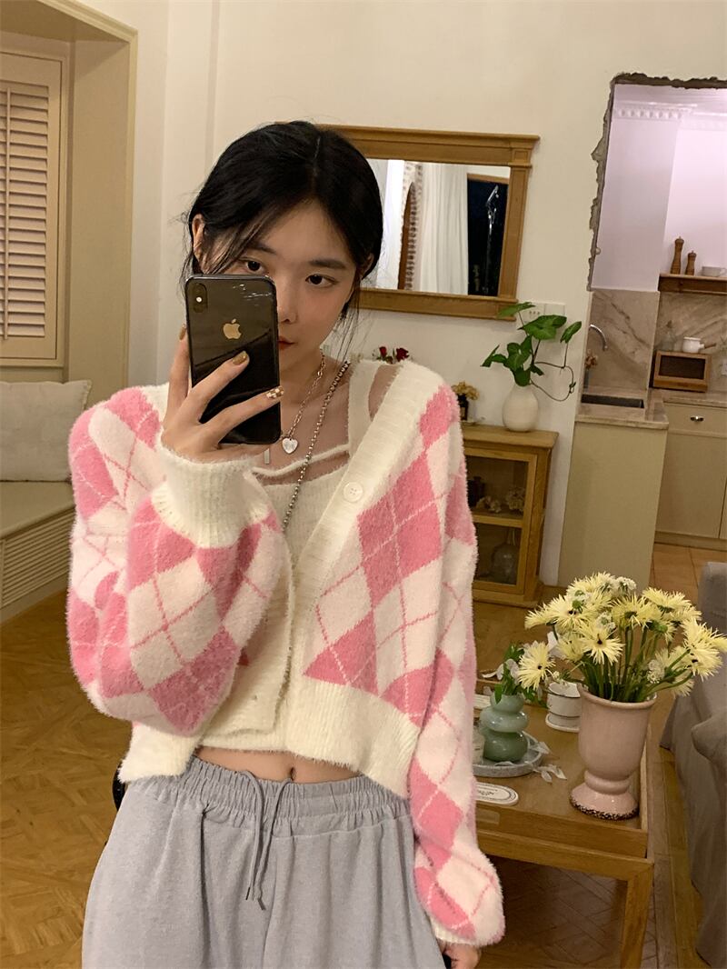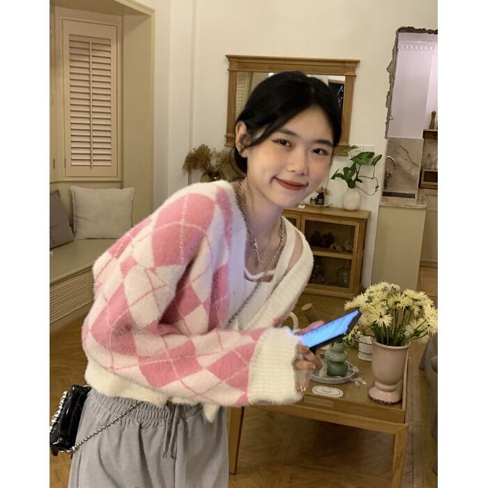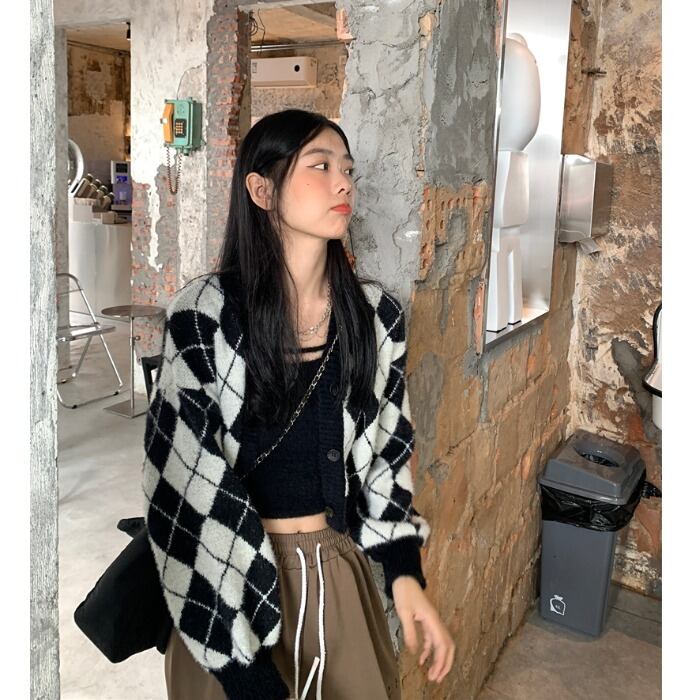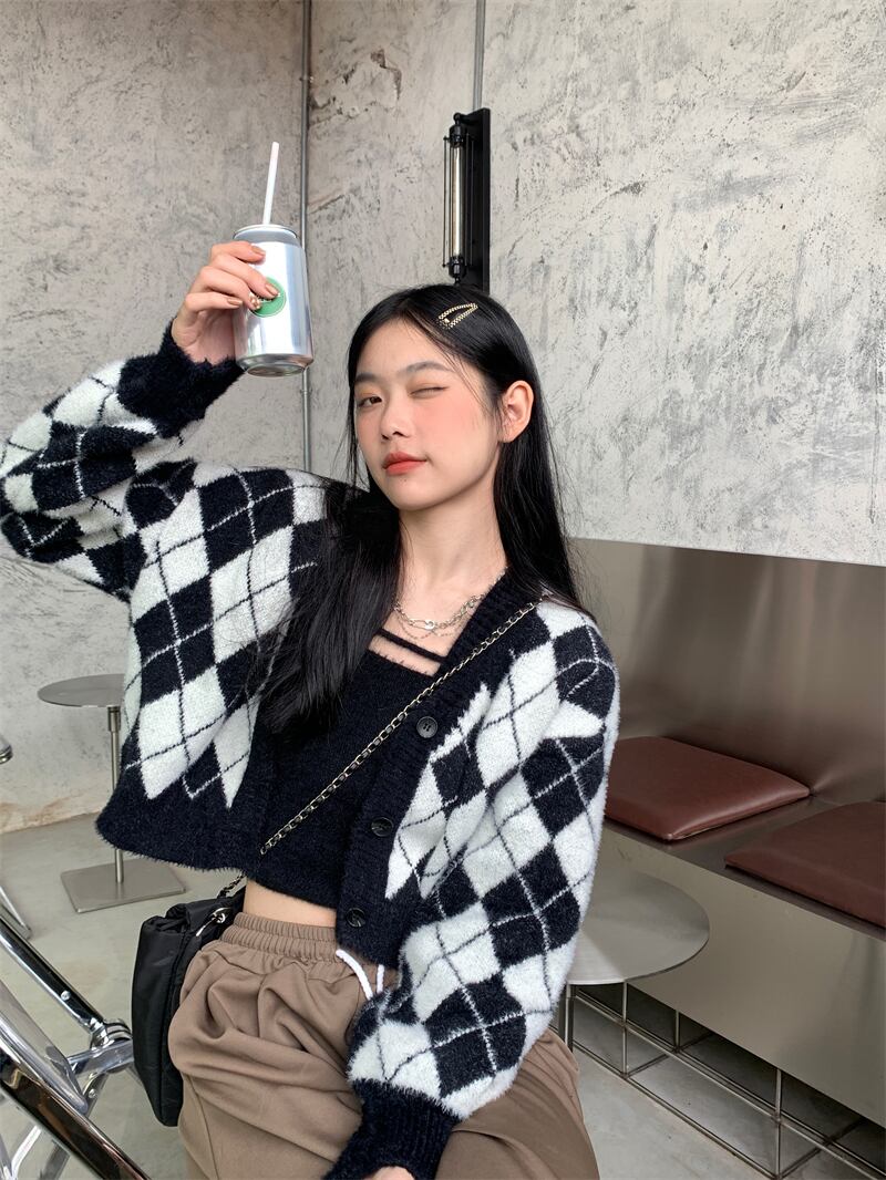 セーター ジャケット レディースオータムウィンタースタンダードルーズショートニットカーディガントップス レトロ 秋物 冬物 kumikum24824637029