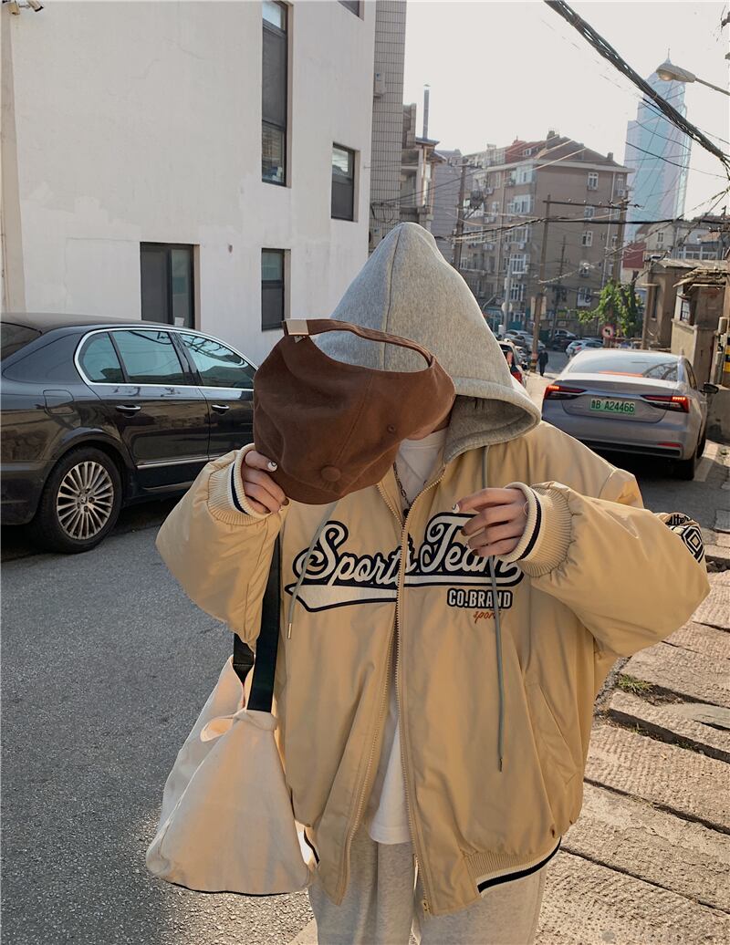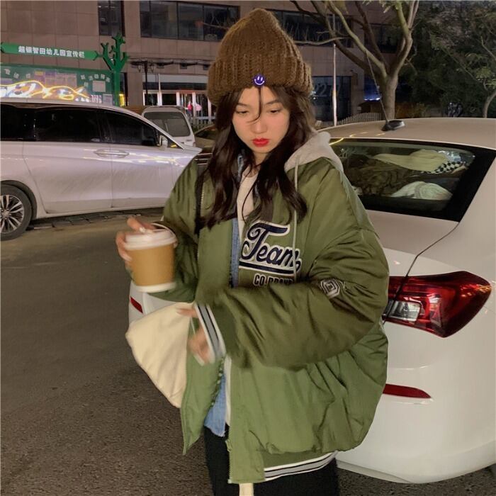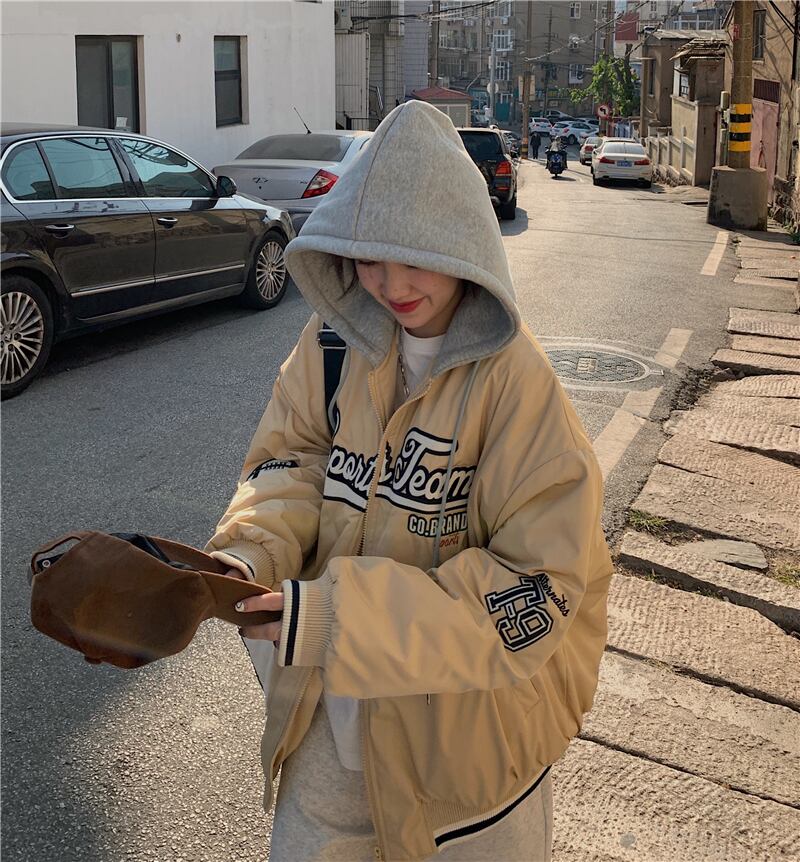 スタイルルーズレディースウィンターフードジャケット レッド 刺繍 かわいい 冬物 kumikum85427931630