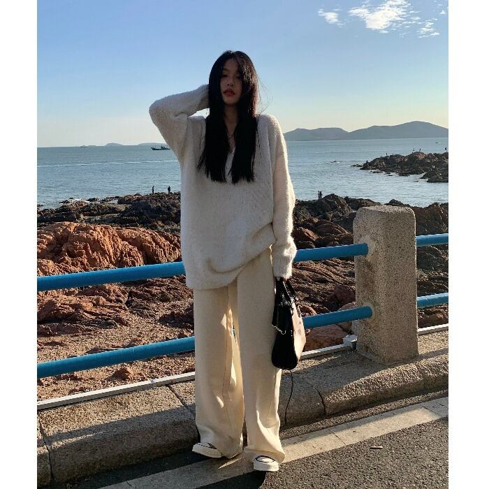 ホワイトセーター Vネックカジュアルジャケット ウィンタールーズ ロング 冬物 kumikum16507621258