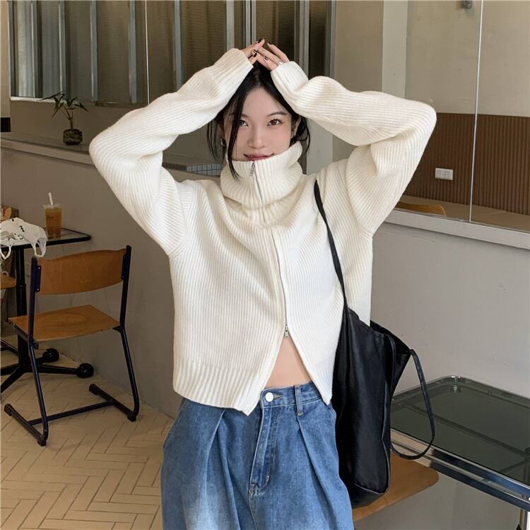ダブルジッパーニットセーター オータムウィンタールーズカジュアルトップス レディース ロング 秋物 冬物 kumikum89544608731